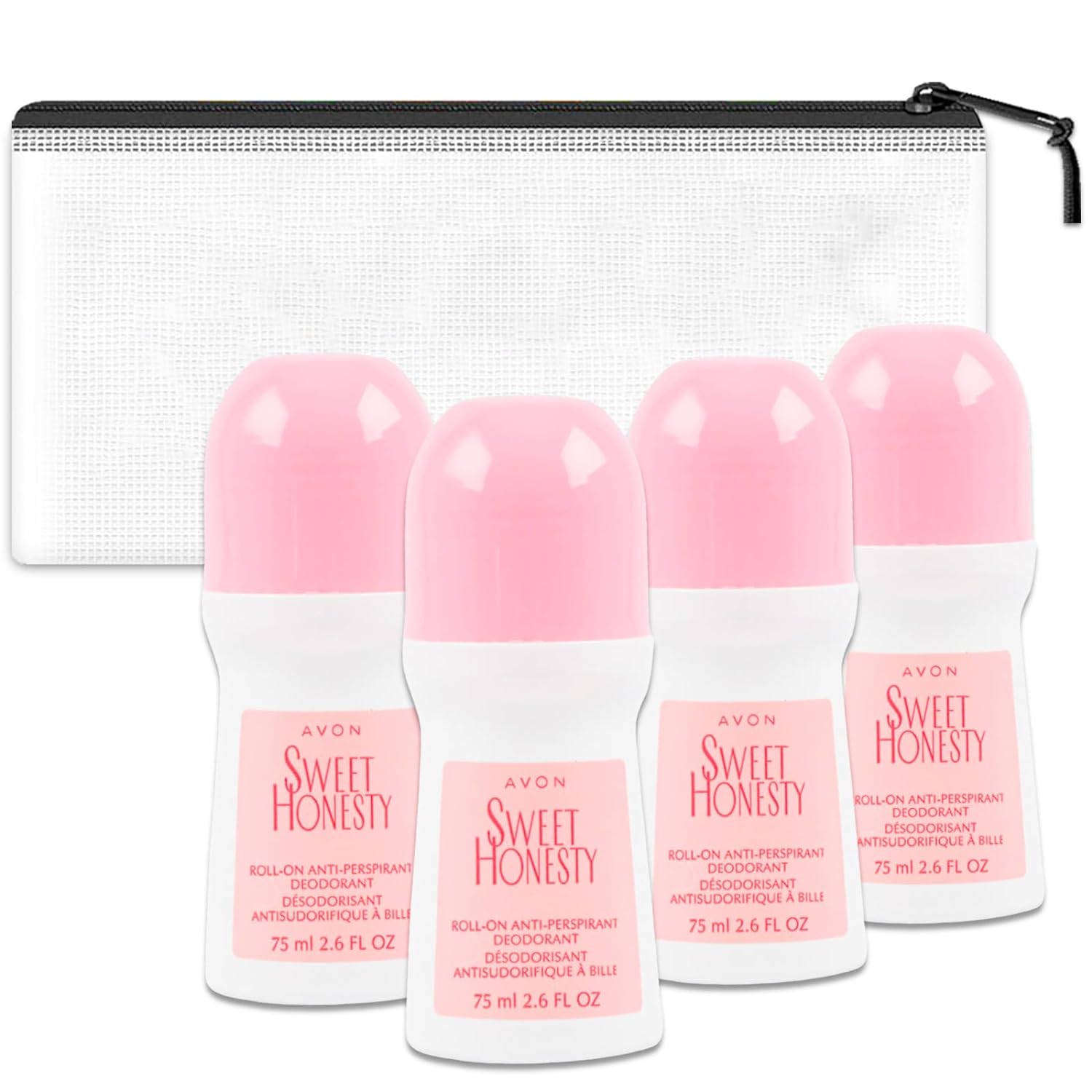 Avon Sweet Honesty Deodorant - 4 Pack of Sweet Honesty Anti-Perspirant Deodorant 2.6 Oz, Bundle with Travel Case | Travel Size Deodorant for Women