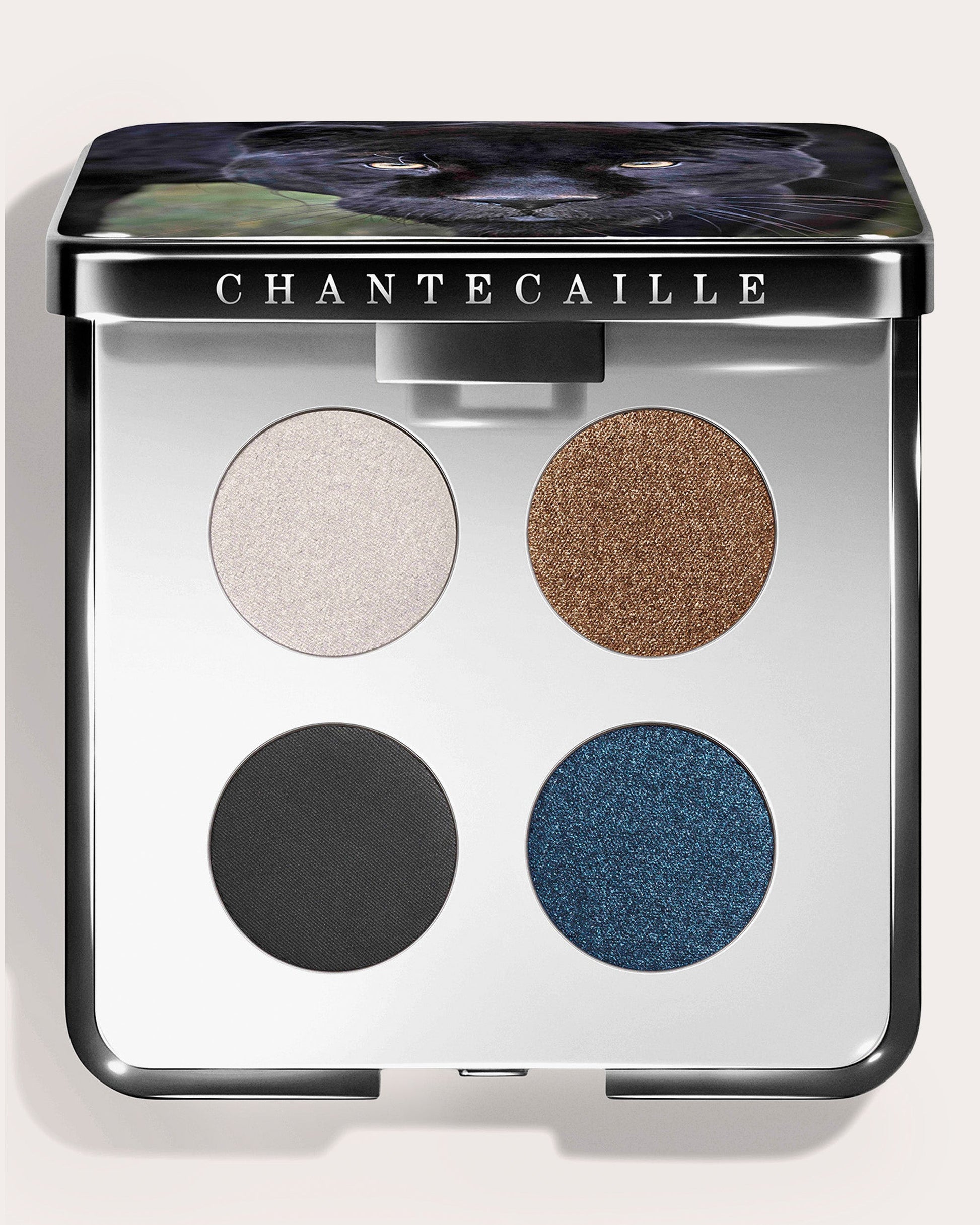 Four dynamic eye shades inspired by the mysterious black jaguar. A quad of matte, creamy chrome pearl and gentle shimmer textures offer endless opportunities for dramatic, artful looks.