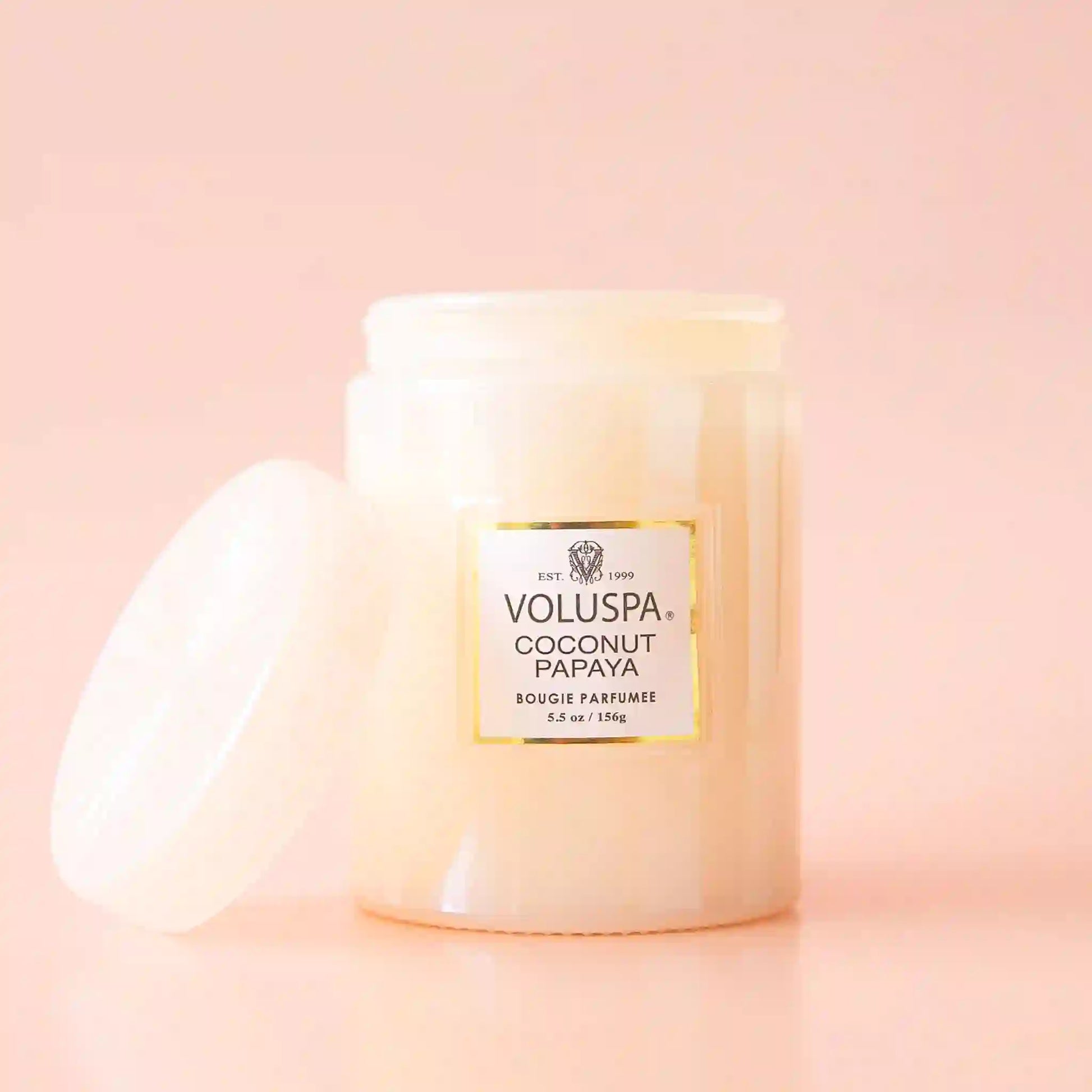 Voluspa's unique coconut wax blend is hand-poured into a 5.5 oz. glass embossed vessel and is topped with a matching lid that keeps the candle dust-free when not in use. The single wick allows you to enjoy fragrance throw for 50 hours. Their candles are hand-poured in the United States and feature our proprietary, clean-burning coconut wax blend and 100% natural wicks and free of phthalates, pesticides, parabens and sulfates and are never tested on animals. Up-cycle this best seller into a keepsake after the last burn.