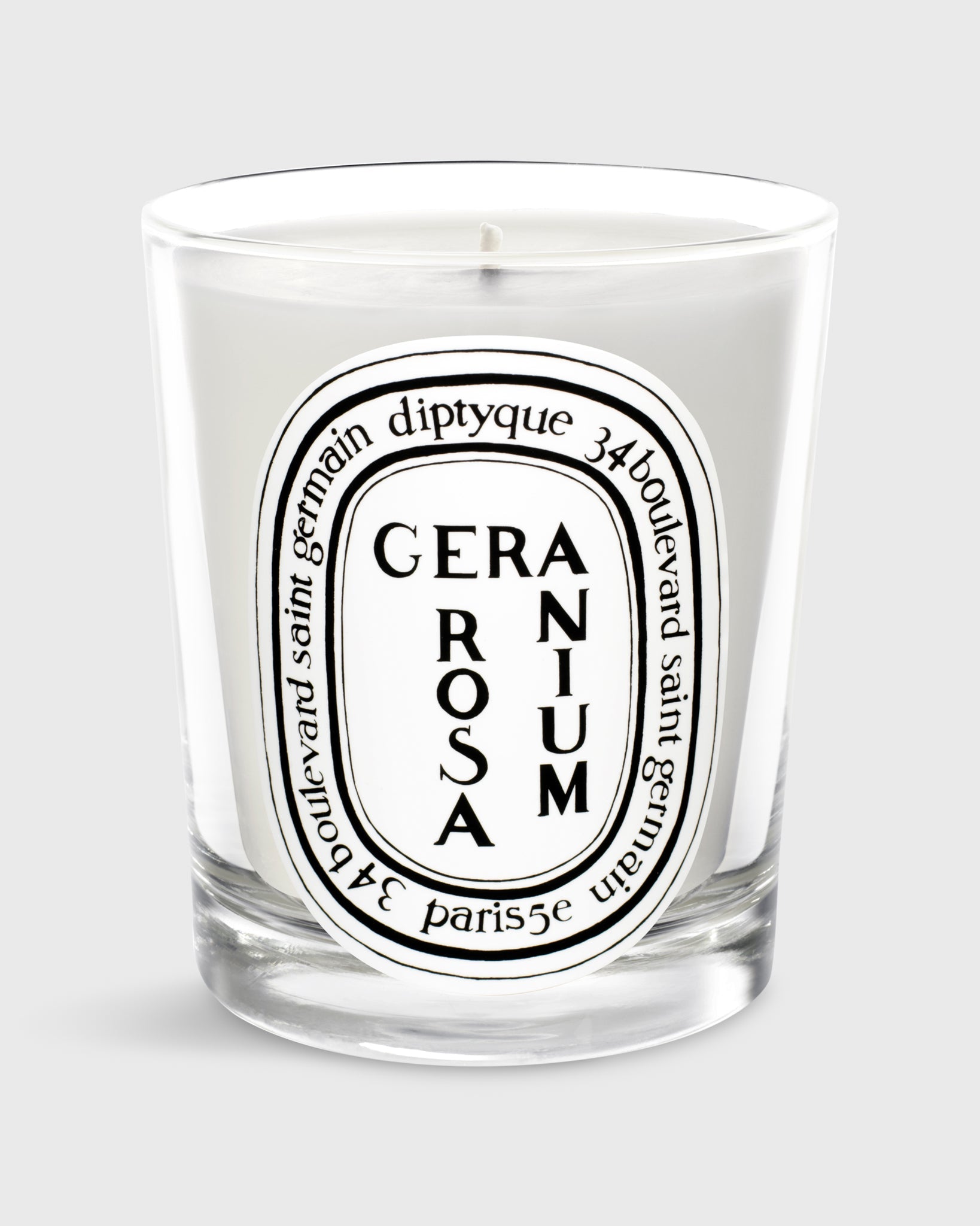 For a lot of people, Diptyque makes the quintessential “status candle”: storied, French, and housed in a glass cup that's beautiful enough to have a second life as a desktop pen holder long after the wax is gone. It also smells pretty fantastic. In short, the hype is real. Geranium Rosa is both fresh and floral, with red geraniums , green leaves, and a bit of spicy rose. The fragrance is great on its own, but Diptyque also suggests layering scents by lighting a couple of varieties at once for a more complex, that-smells-so-good-but-what-is-it effect. This one pairs nicely with Mimosa or Vetyver