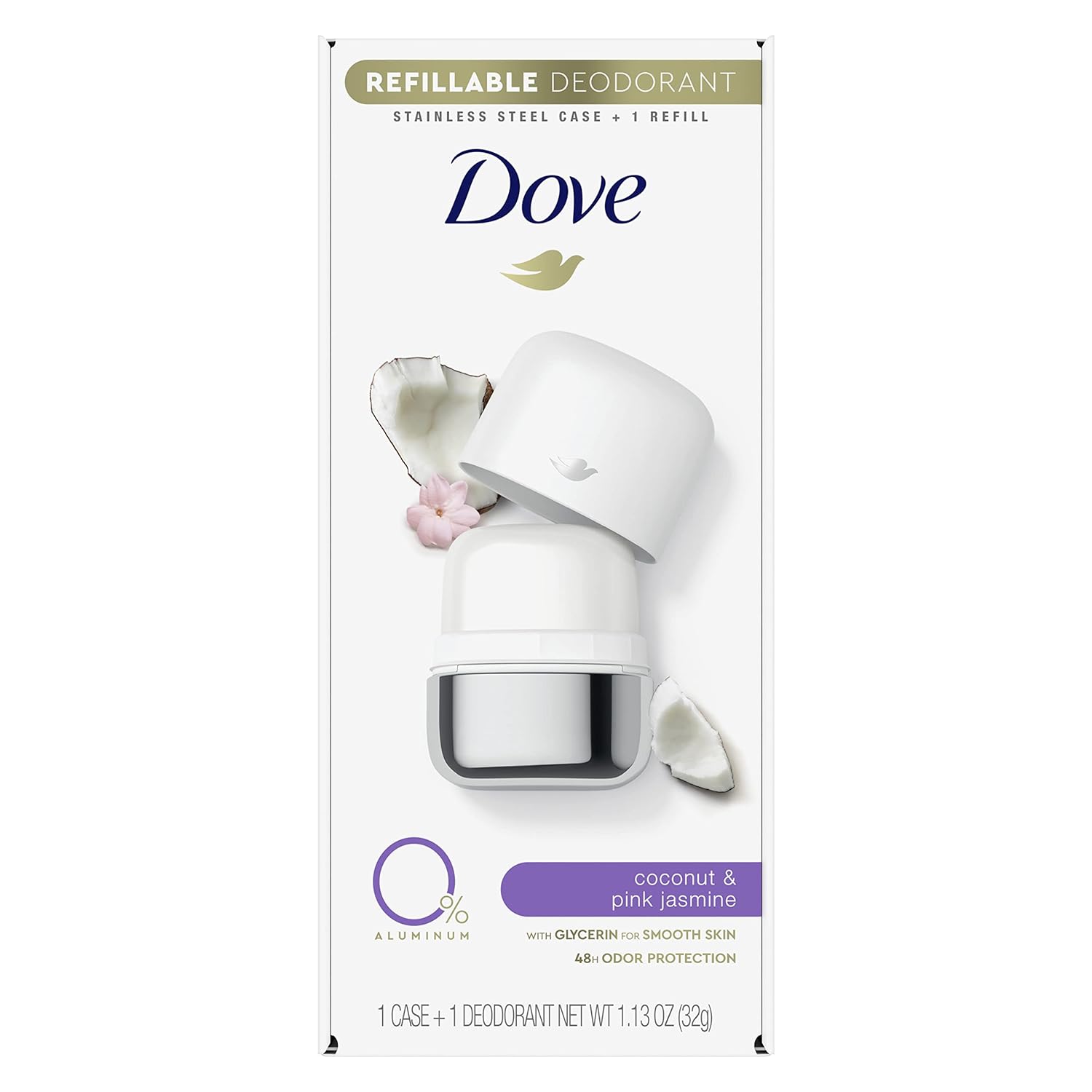 REFILLABLE DEODORANT STARTER KIT: Dove proudly introduces their first refillable deodorant, the starter kit contains a reusable, stainless steel case and one deodorant refill