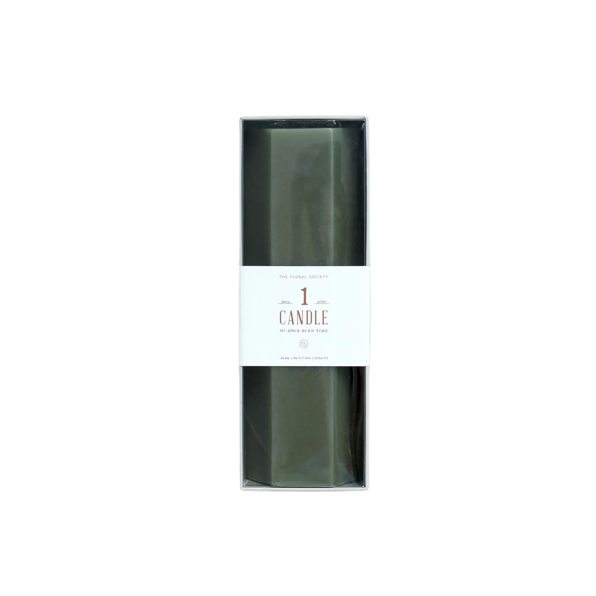 Final Sale Item Our hexagonal pillar is a modern take on a traditional candle and embodies a superior depth of color, a cotton wick, and a 105-hour burn time. Subtle variations in wax depth and color opacity may occur