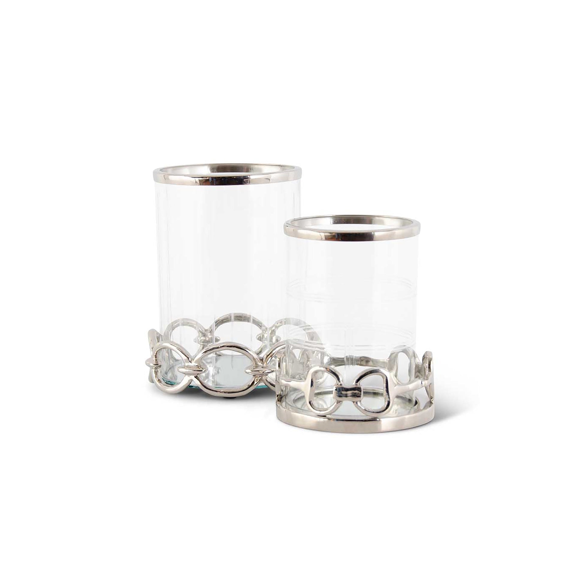 With silver, horse bit details, the vessels of these candle holders deserve a place where there’s presence. Use them on an entry console, or in the center of a table where a little flicker will make the night magical.