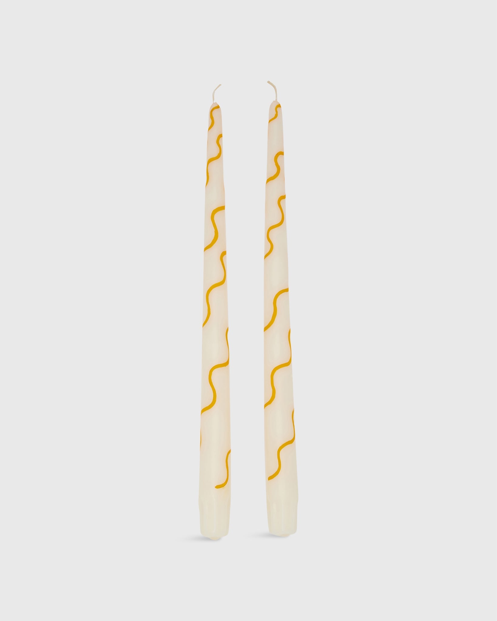 Hand-Painted Taper Candles (Set of 2) in Marigold
