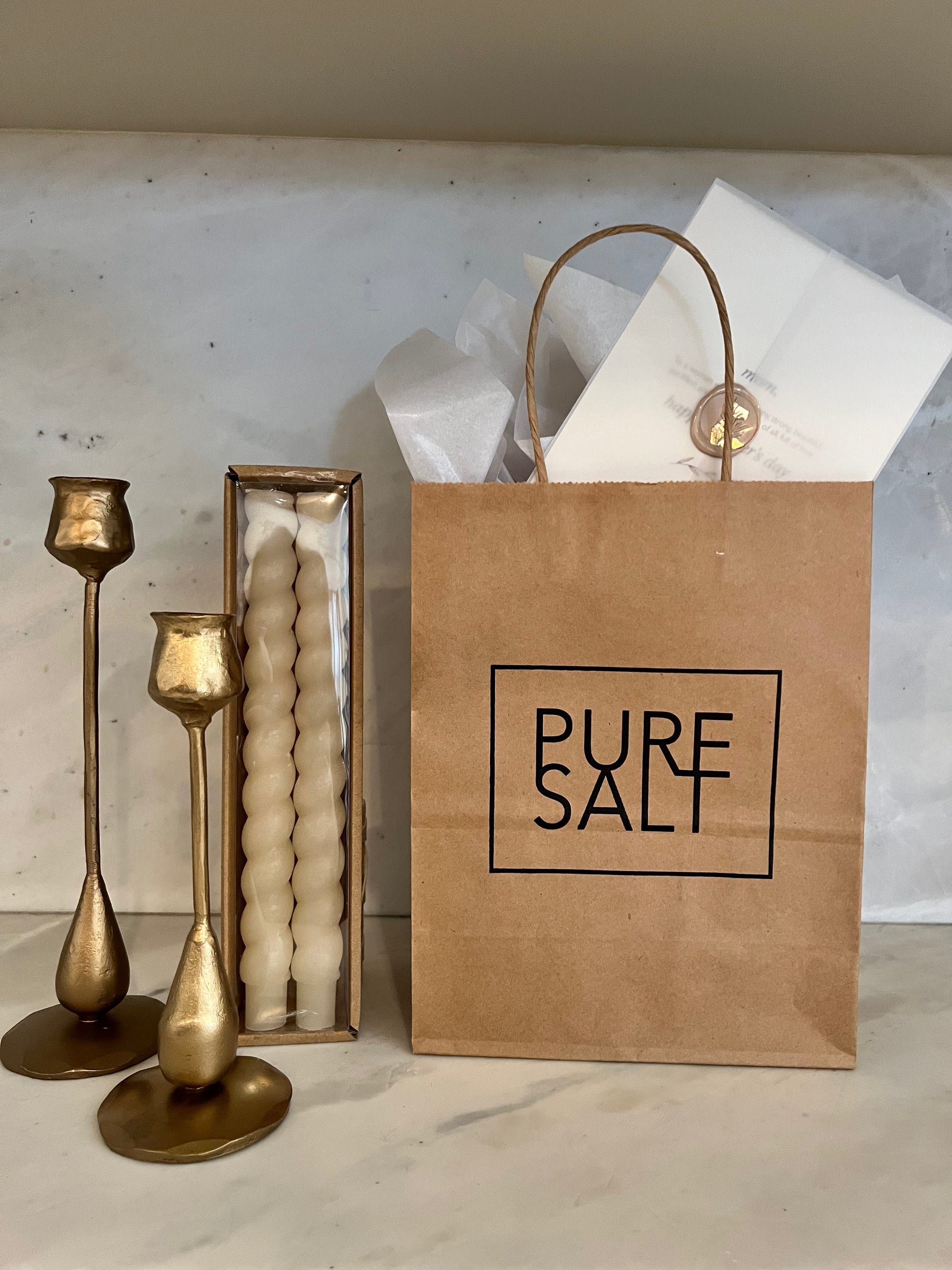 Gift the most important woman in your life something special to light up hers! Our Mother’s Day bundle features our best-selling Lucy Twisted Candles (set of two) and Bella Hand Forged Iron Taper Candle Holders (set of two, small and large), plus a gift-wrapped card to complete your celebrating.