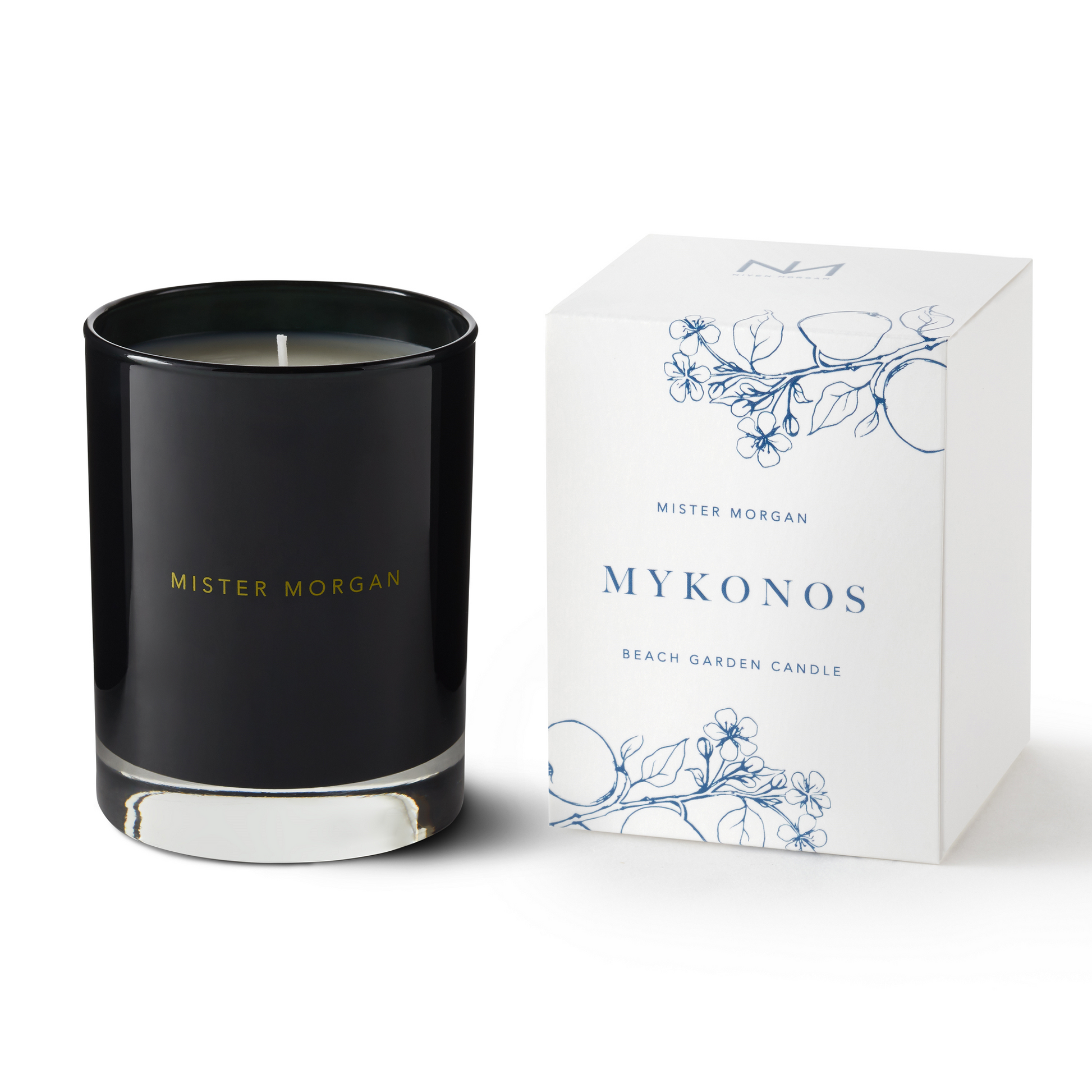 Niven Morgan's Mykonos candle is a fresh blend of island air, sandy beaches and flowering vines. A scent gently flowing in the air as the island's great windmills churn in the calm breeze.