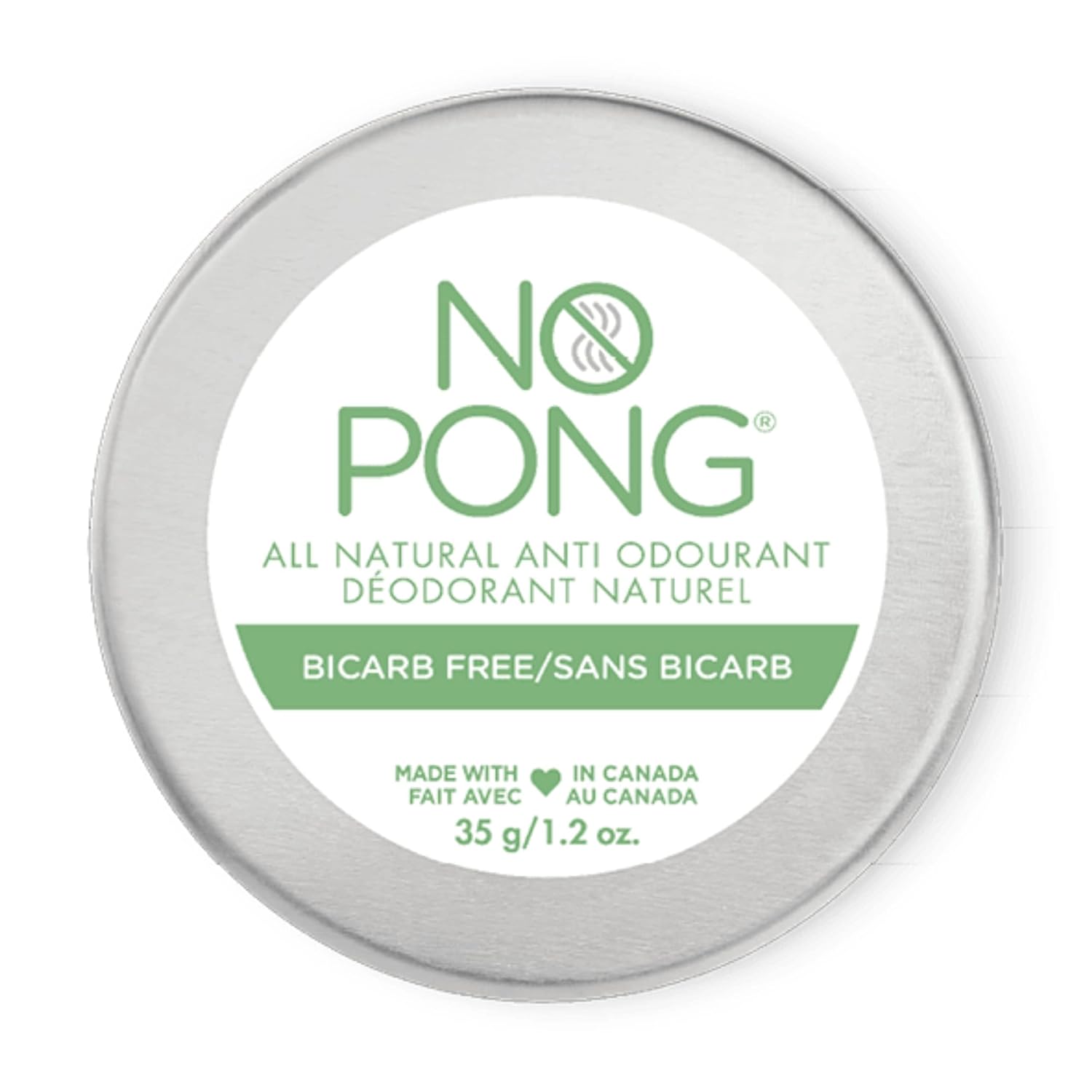 No Pong - Bicarb Free Formulation (Baking Soda Free), All-Natural Deodorant, 35g Creme Anti-Odourant, Paraben-Free, Aluminum-Free, Plastic-Free, For Men and Women