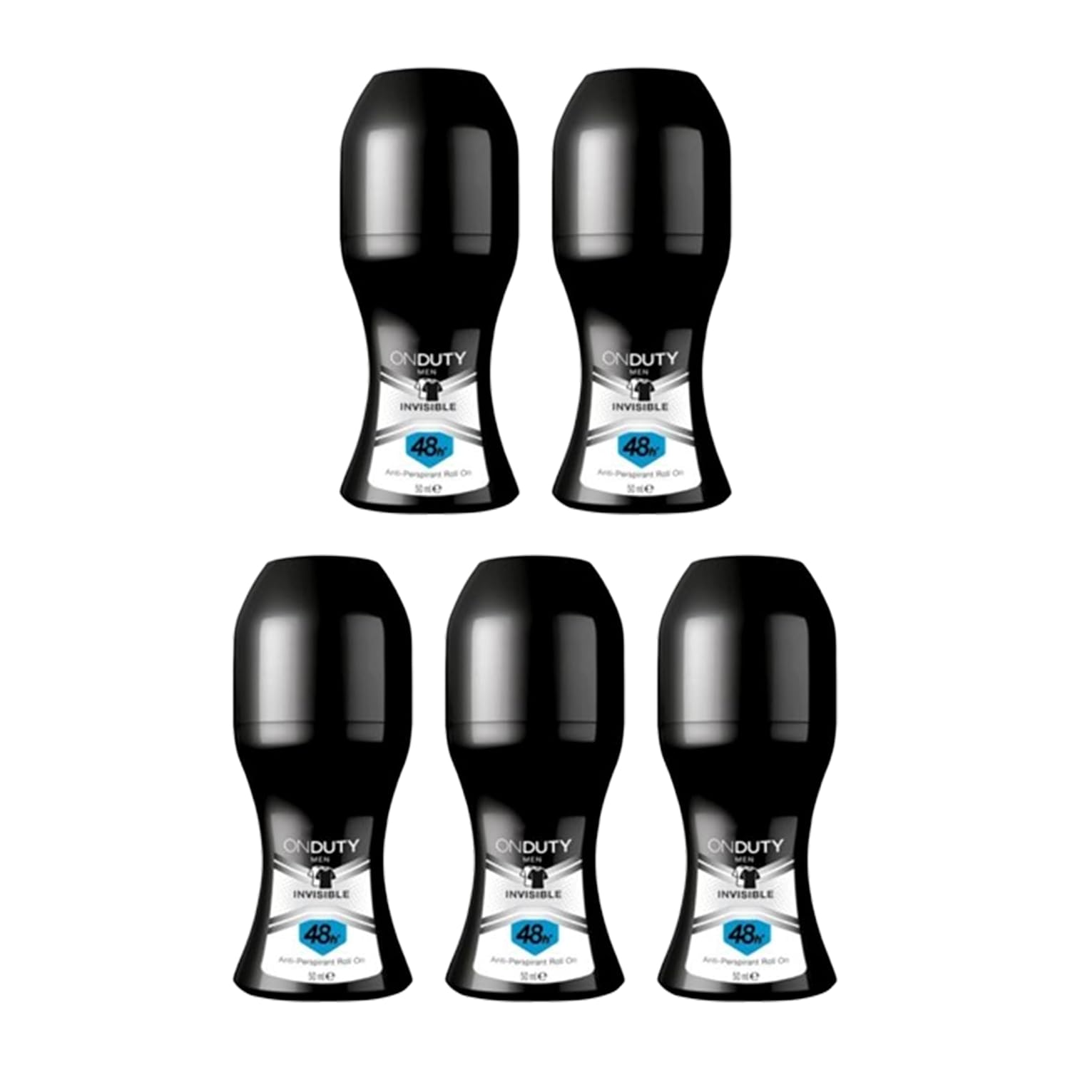 On Duty Invisible Men's Antiperspirant Roll On Deodorant 50 ml, Formula that does not cause yellow stains on clothes, Protective barrier against sweat with Dry pore technology (Pack Of 5)