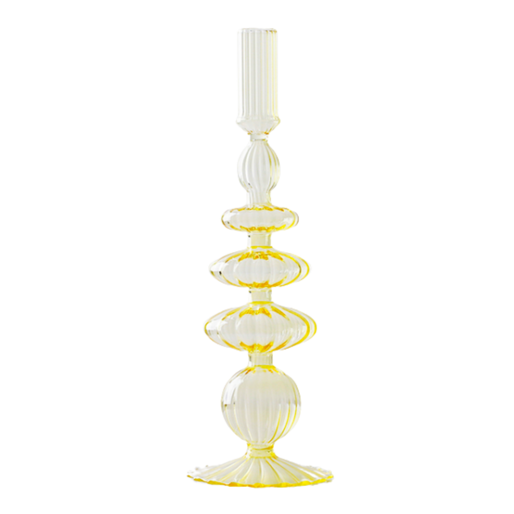 You can never go wrong with a pop of color! These retro candlestick holders, hand made with colored glass, add a fun finish to any space!